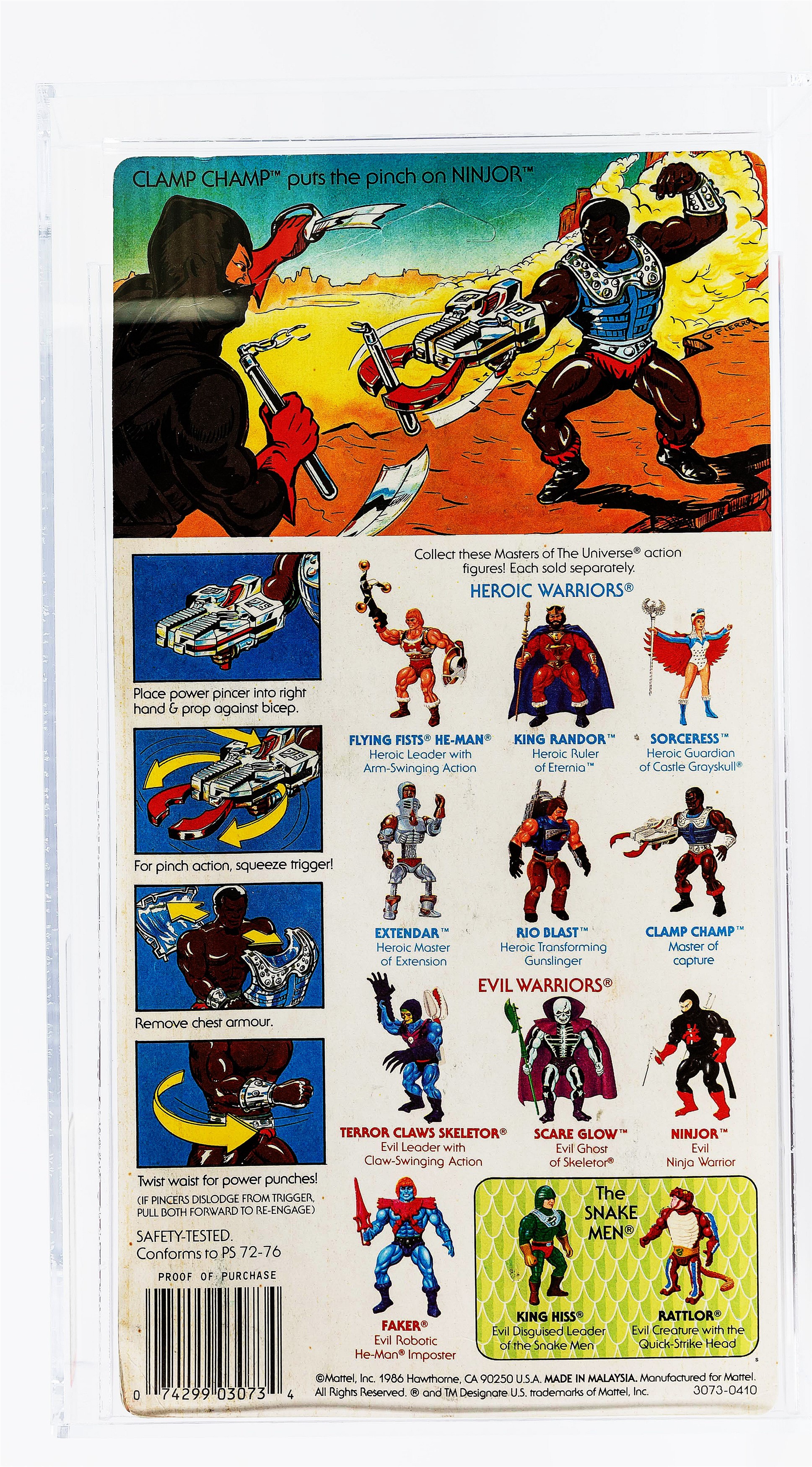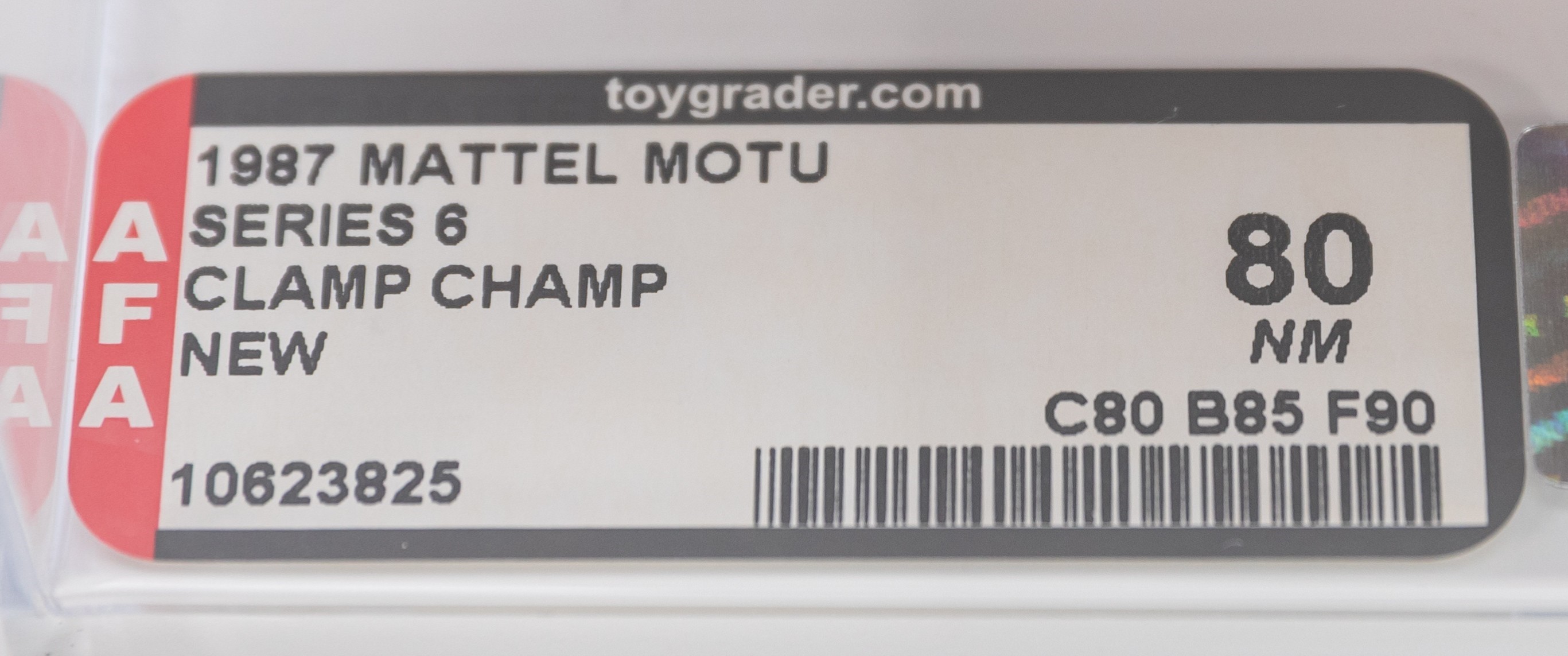 Difficult to find Series Six carded figure with “New” logo. Crystal clear bubble and unpunched, we foresee action from late-series MOTU collectors. Made in Malaysia. Encapsulated by AFA (80, 80-85-90), #10623825