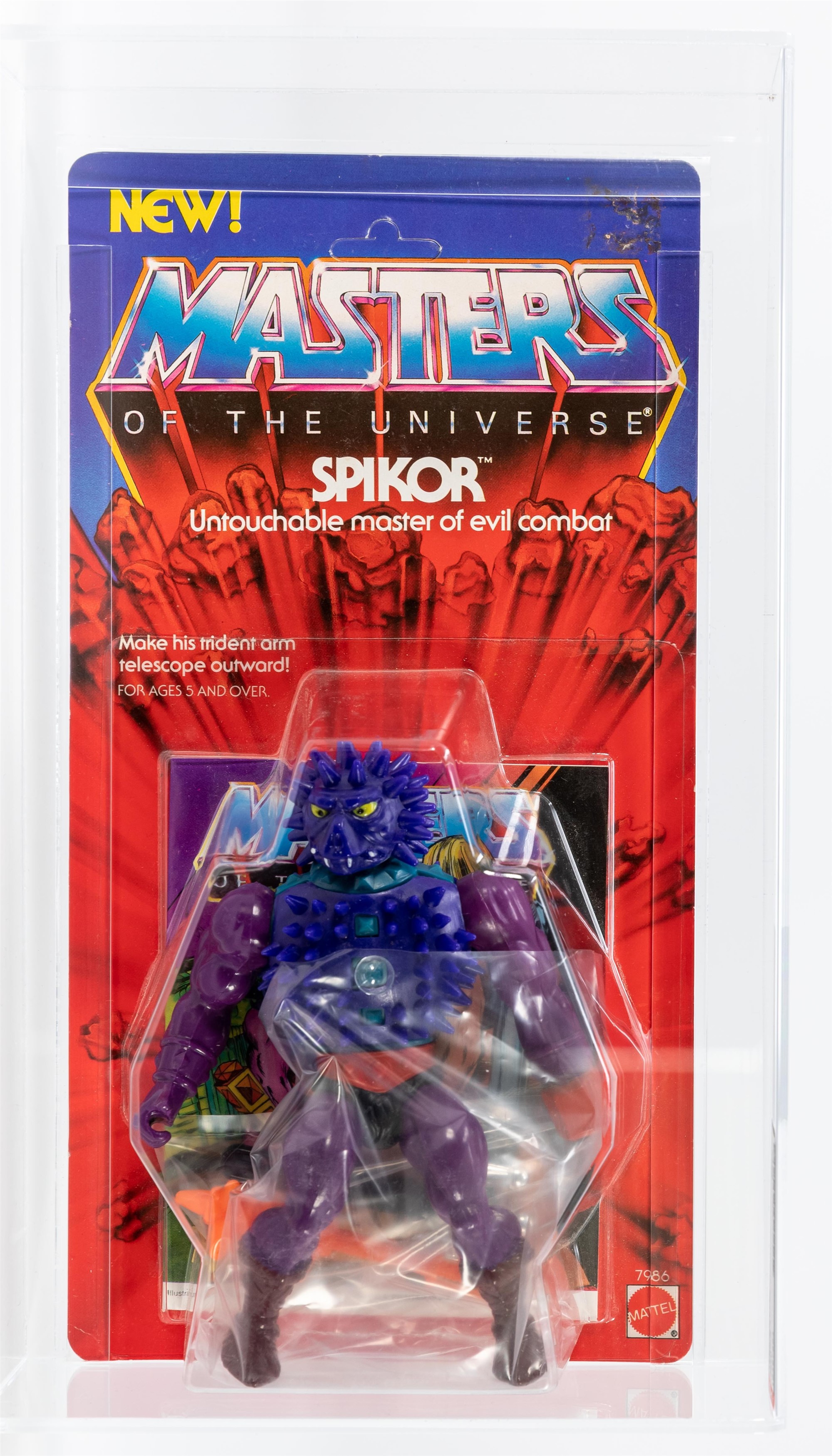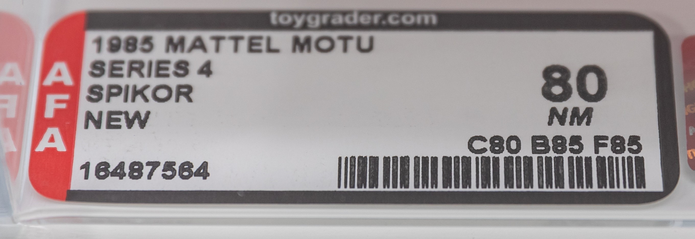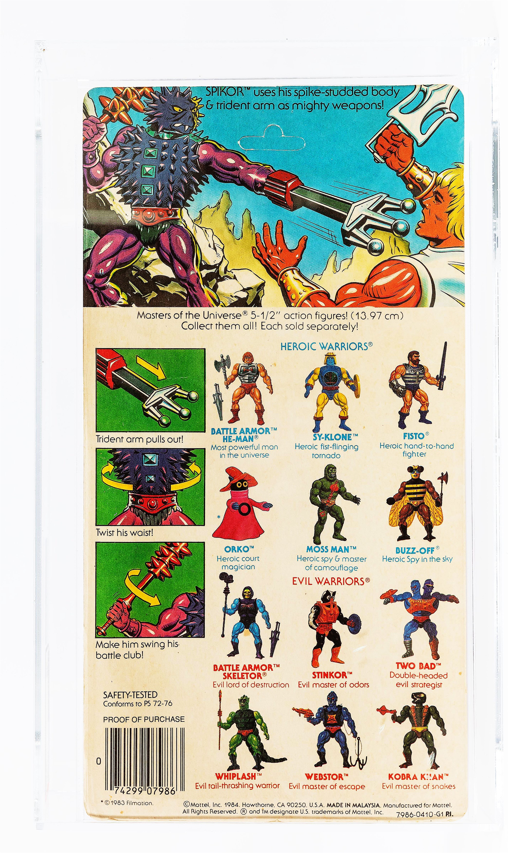 Unpunched Series Four carded figure with very hard to find combination of “New” logo and clear bubble. This is the rarer, more desirable “3-spike” version – most are 4-spike. Light sticker residue from removal of the original price tag. Collectors will look to upgrade when the bidding opens for this one! G1, Made in Malaysia. Encapsulated by AFA (80, 80-85-85), #16487564
