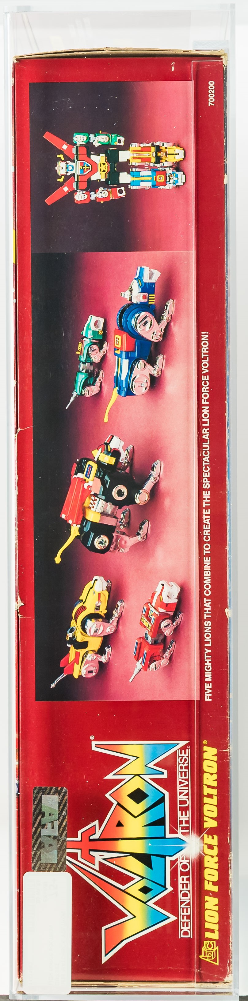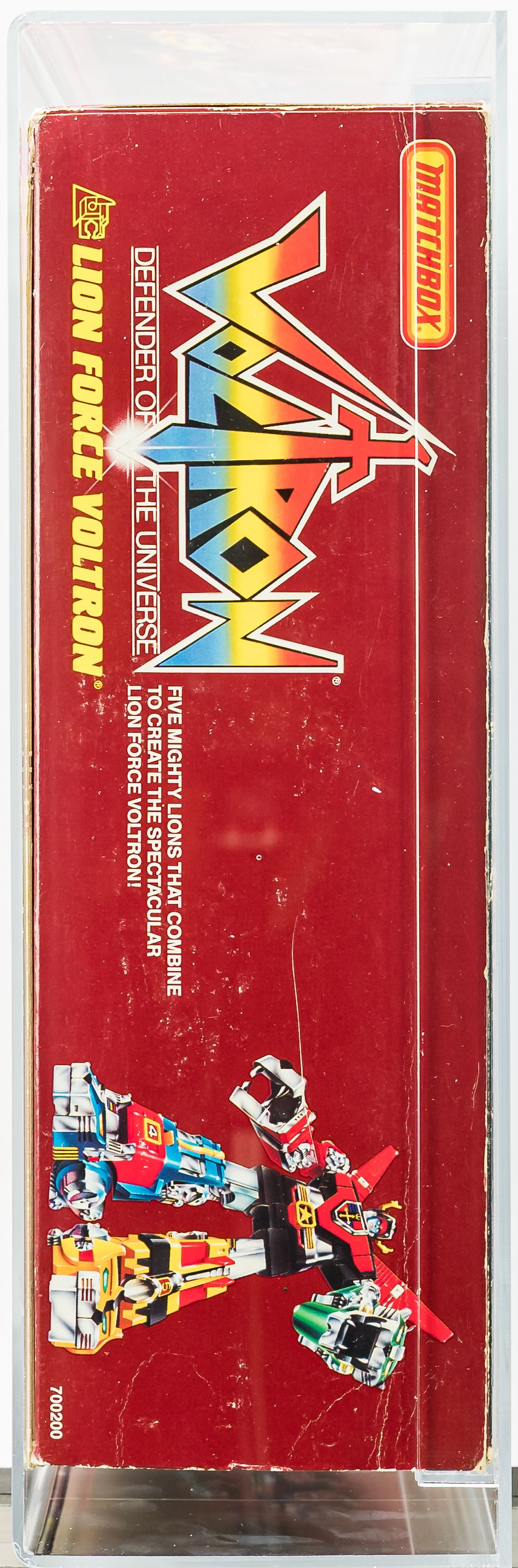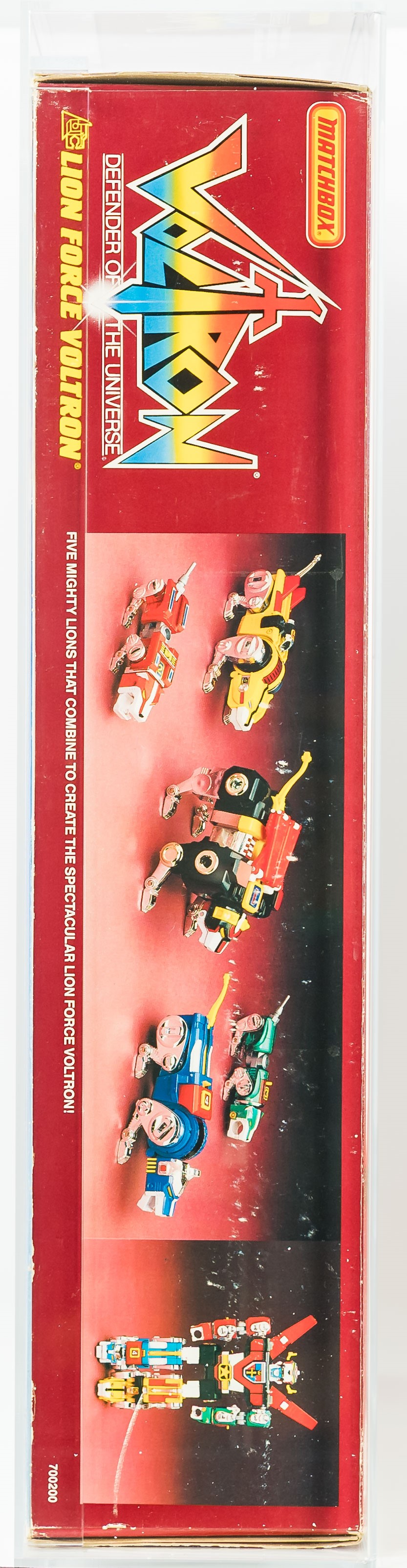 Ultra rare AFA red label Lion Force Giftset from the highly coveted Matchbox Voltron line released in 1985. Unlike the more common Voltron toys released by Panosh Place and LJN, the Matchbox releases, especially the giftsets, were of exceptional high-quality (die cast). The offered giftset is the “holy grail” in the Voltron line, and it’s rare - very rare. In fact, AFA has only assigned a red label to six examples (inclusive of all grades) in its 25 year history.