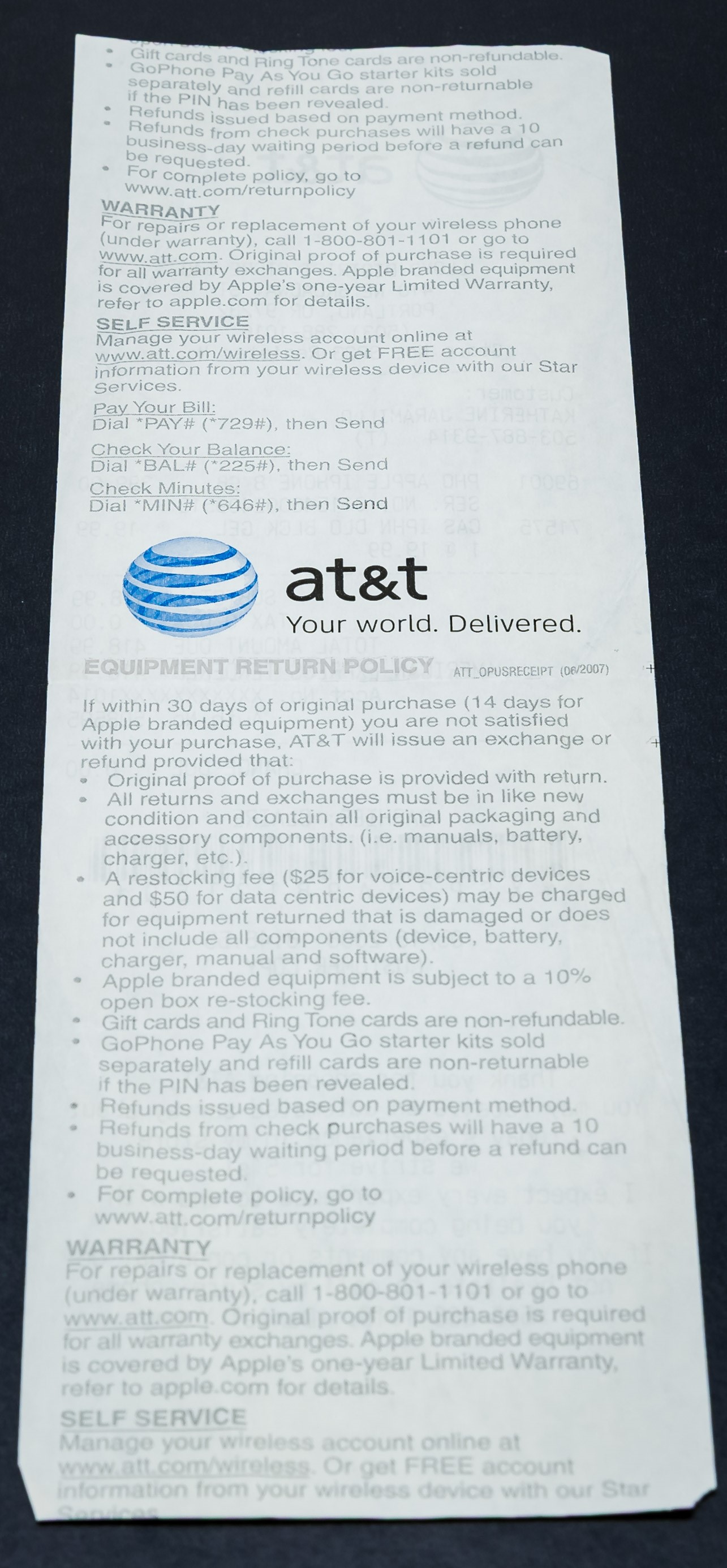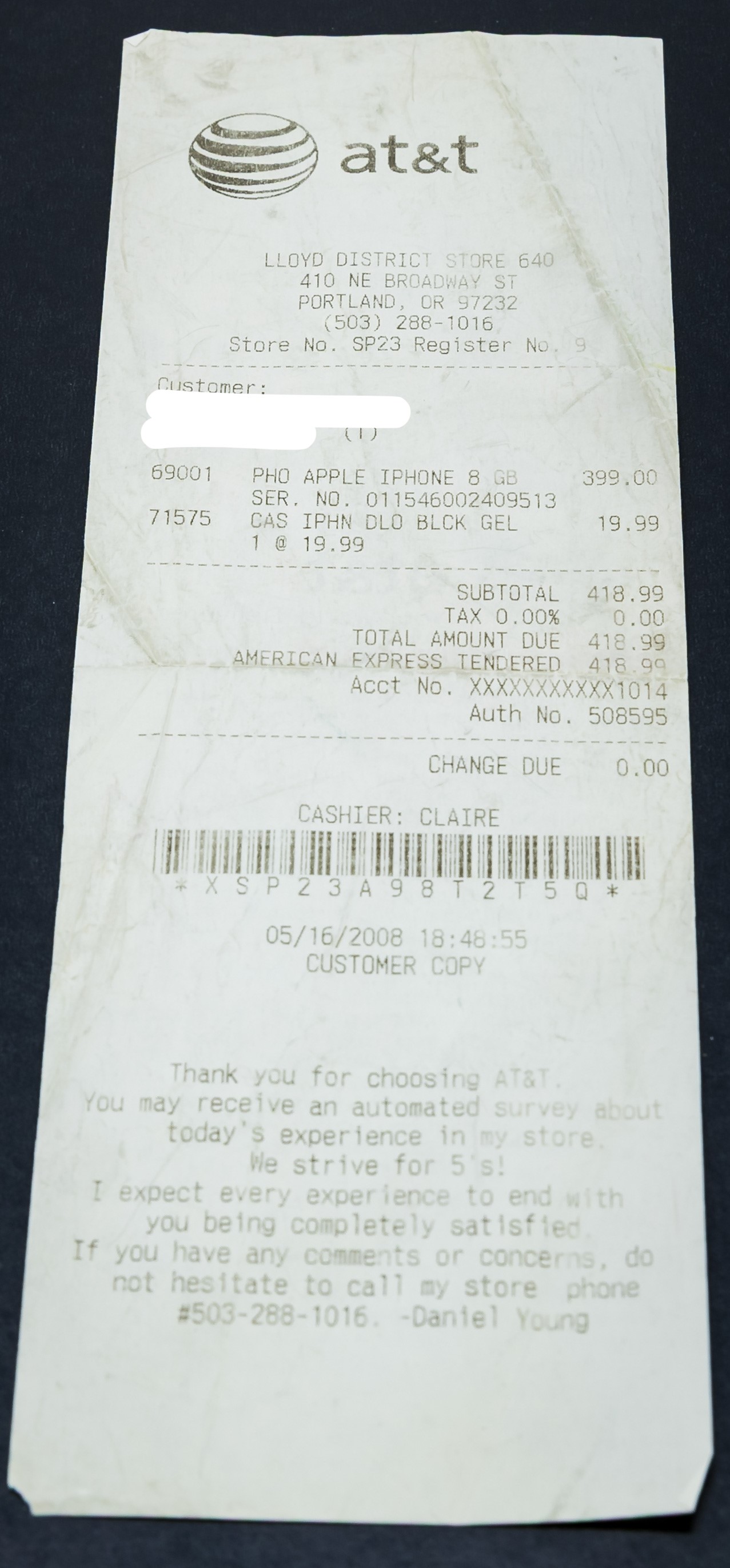 Original receipt included