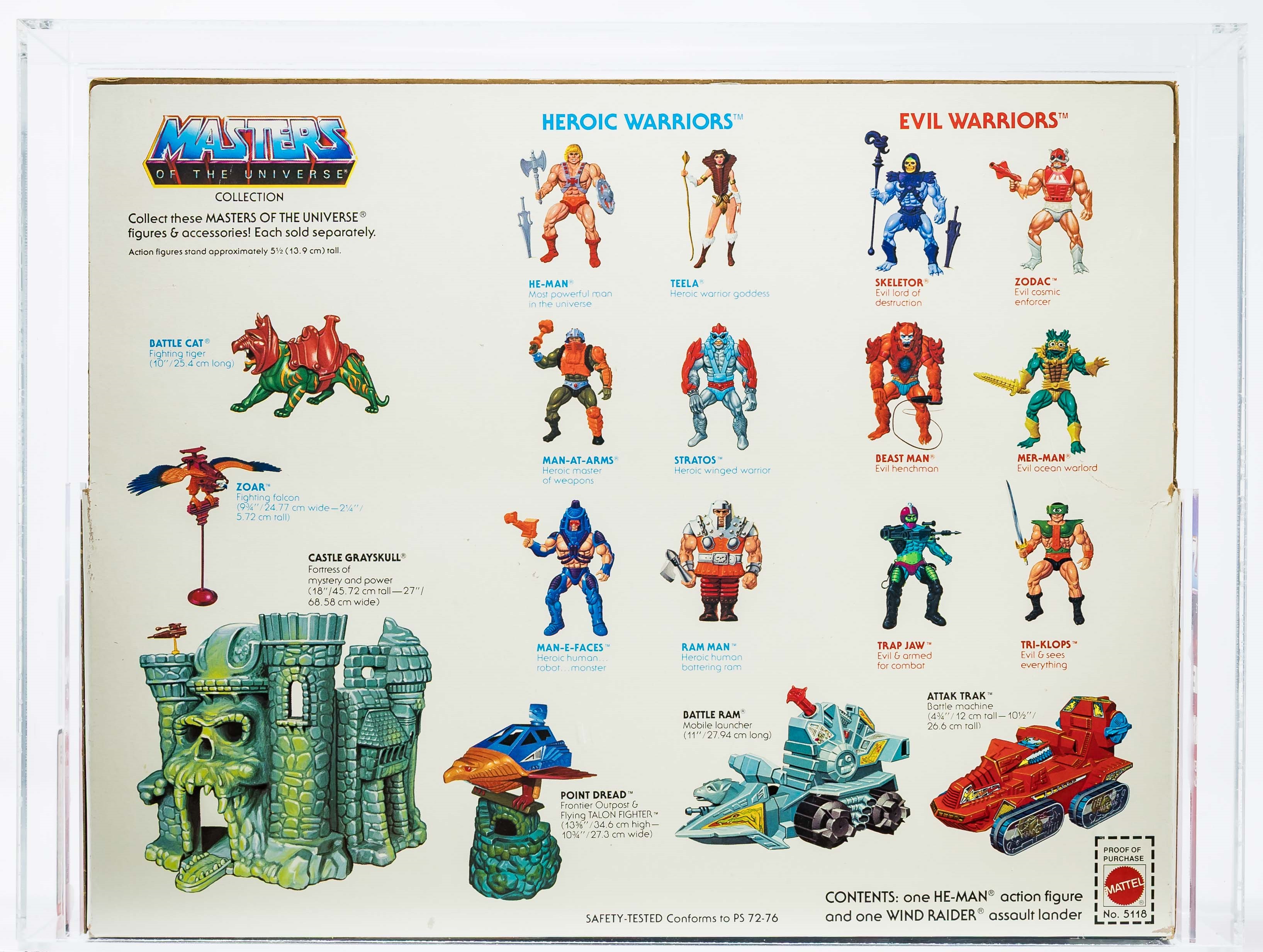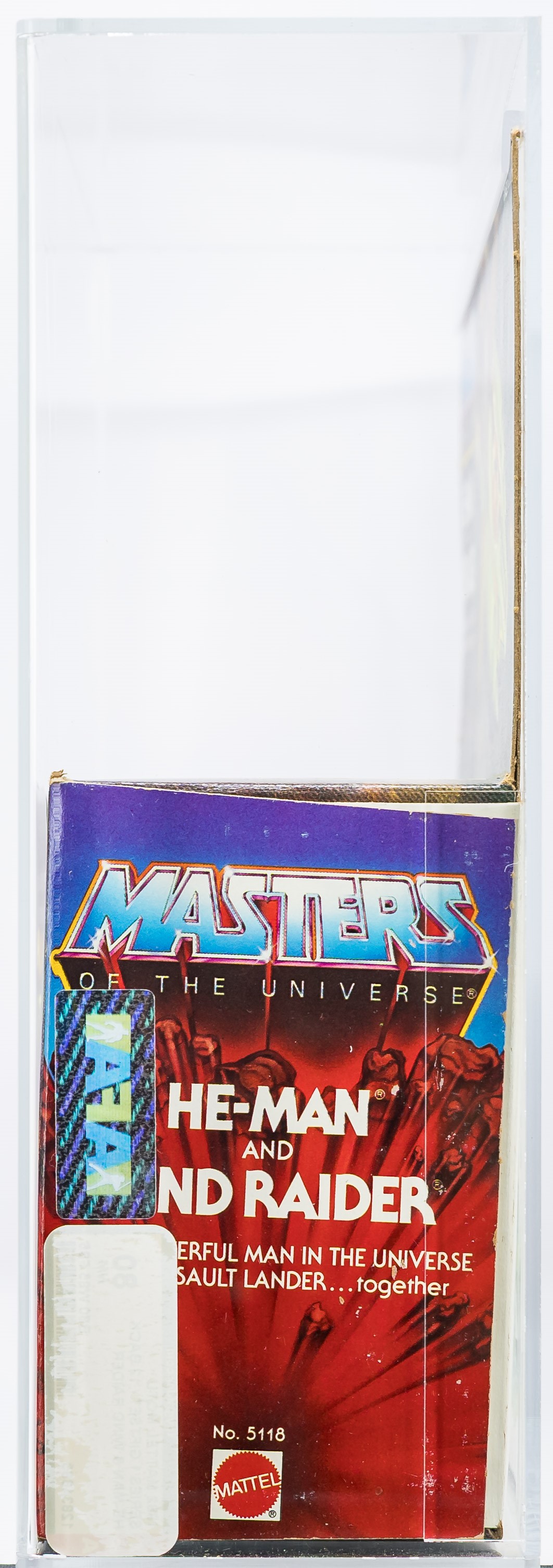 Our example, a beautiful factory sealed AFA 80, is certain to create excitement in the MOTU collecting community. The unique double logo on front, one at the top and one at the bottom, will result in an immediate double-take as collectors are used to seeing only the single logo on the 8-Back edition. The condition of the box itself is certainly commensurate to its assigned grade. Deep rich color with few flaws. The most notable imperfection is a bit of creasing in the upper corner. The back of the box, displaying 12 MOTU characters (not 8), is very white with no flap crease. Each end is factory sealed and there is no colorbreak along either front edge. The display window, showcasing the iconic He-Man action figure, is crystal clear. He-Man is firmly tied in place at the waist and biceps. Simply put, this is the rarest MOTU release we have offered in our auctions. Bidding ends November 9th. Encapsulated by AFA 80, (80-85-85) #12834683