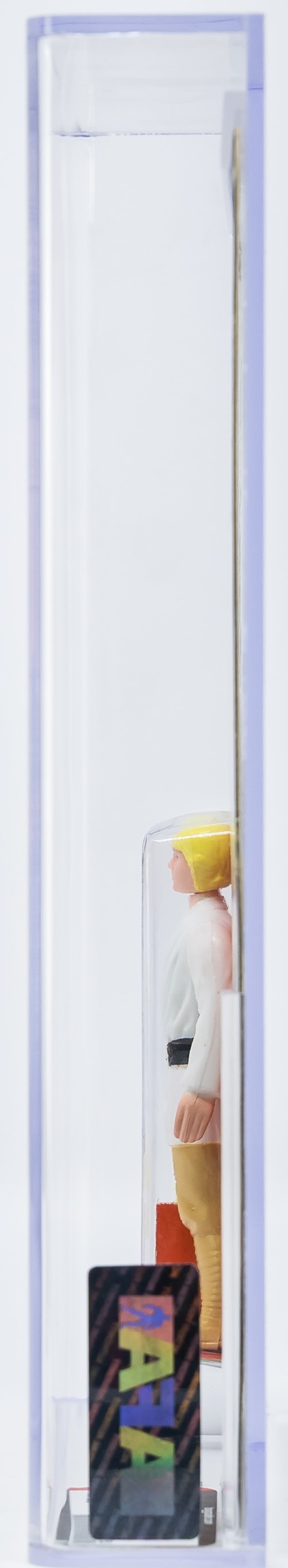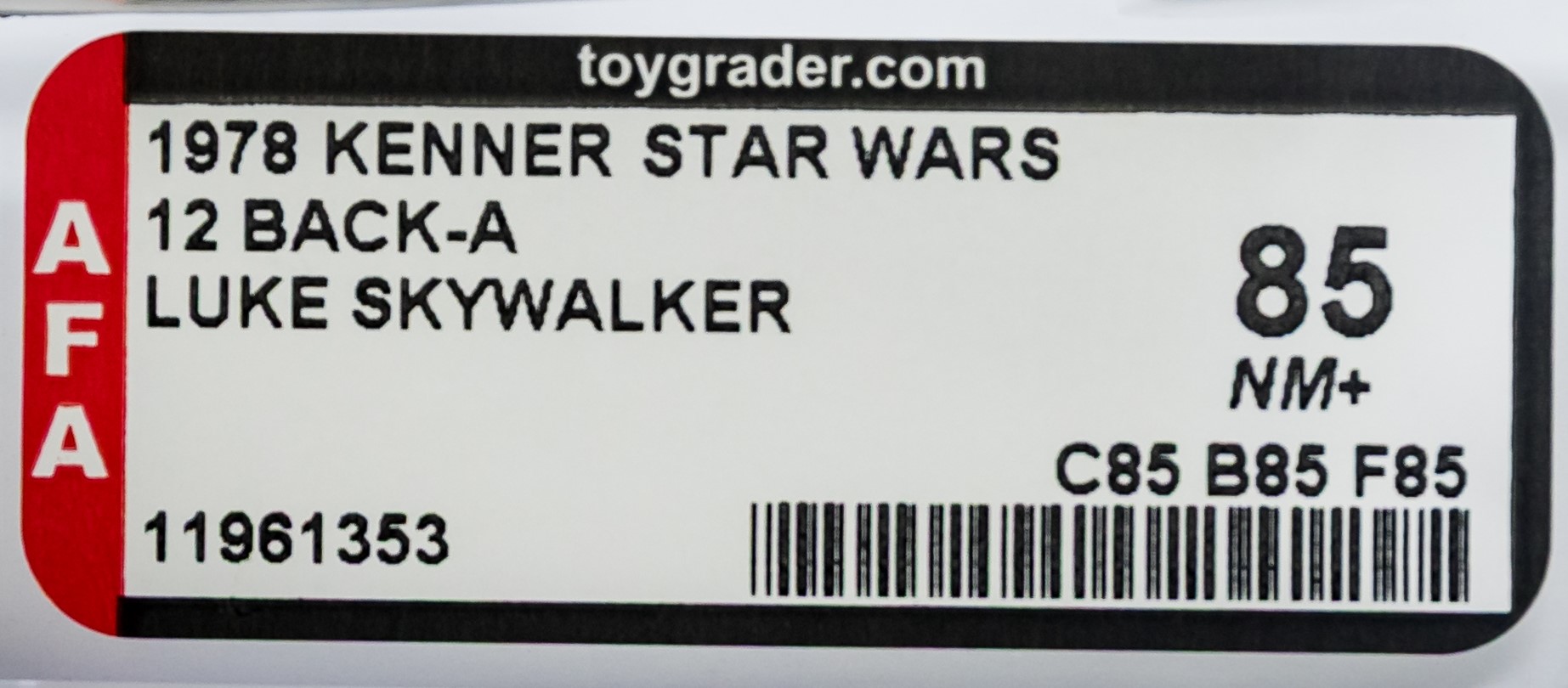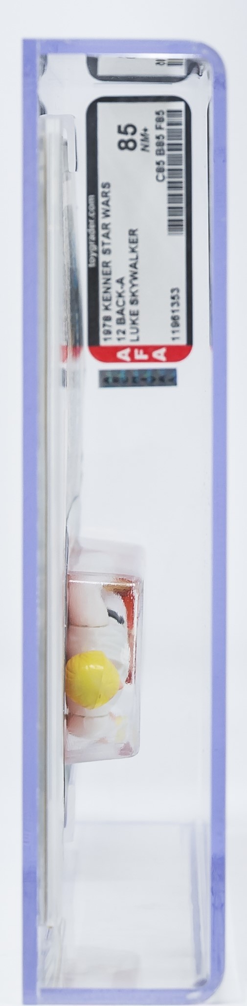 Condition is superb. Well-centered and unpunched with no edgewear. No price tag sticker or price tag sticker residue/imprint. Card is perfectly flat with no bowing. Card imperfections front and back are few. Bubble is clear with no yellowing. It retains perfect form with no dents or cracks. The Luke Skywalker action figure within looks fantastic with white top (no yellowing). An awesome “triple 85” example of the most iconic action figure in the hobby. Encapsulated by AFA 85, (85-85-85) #11961353