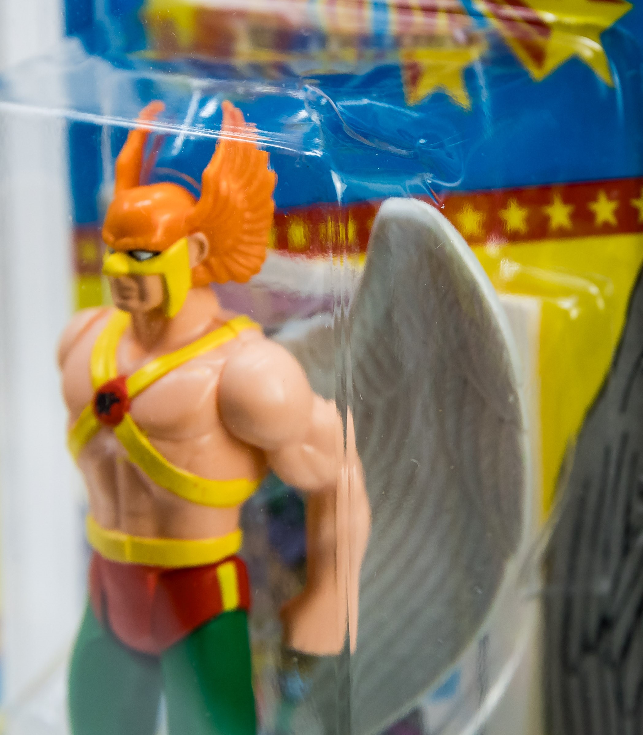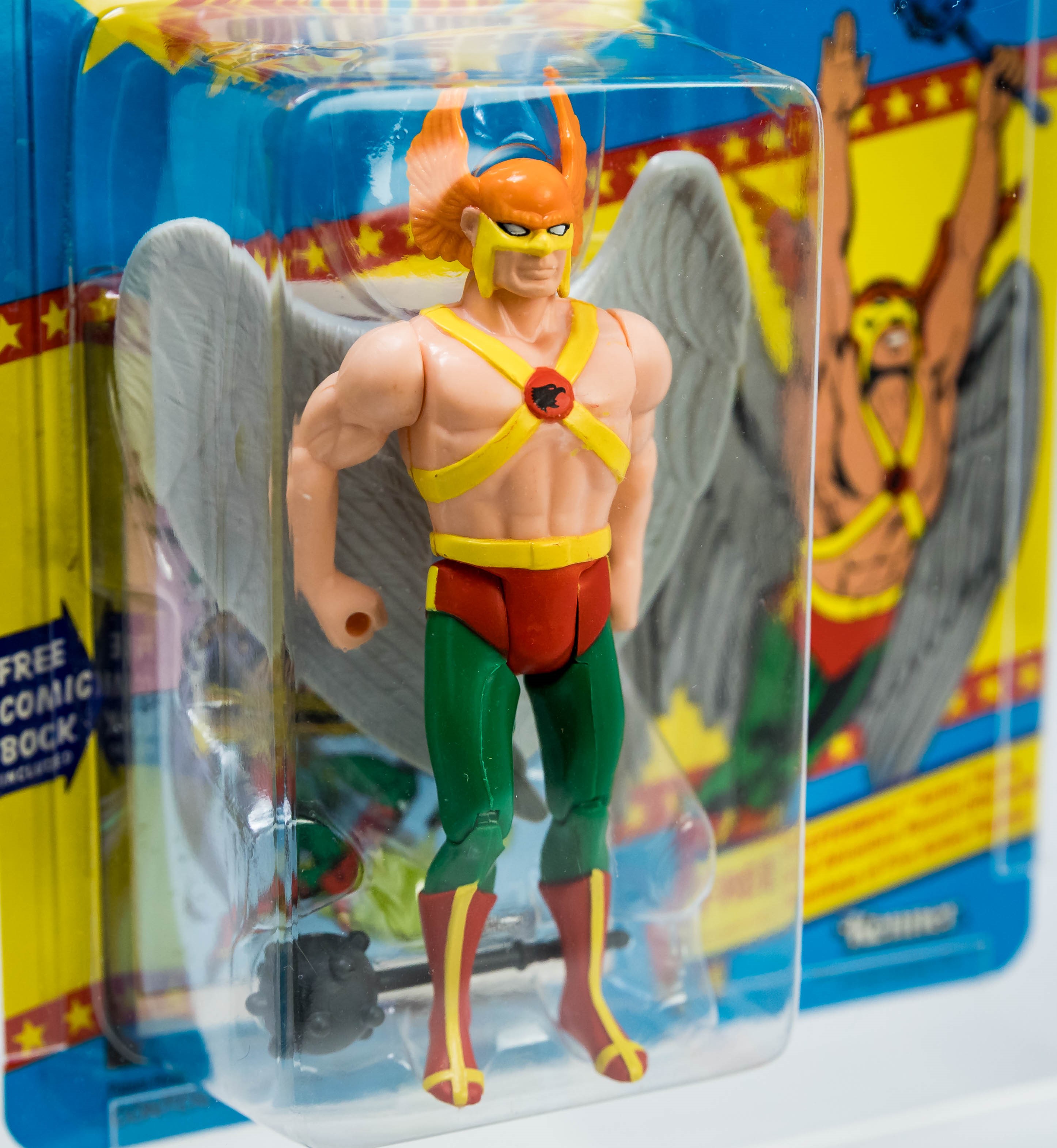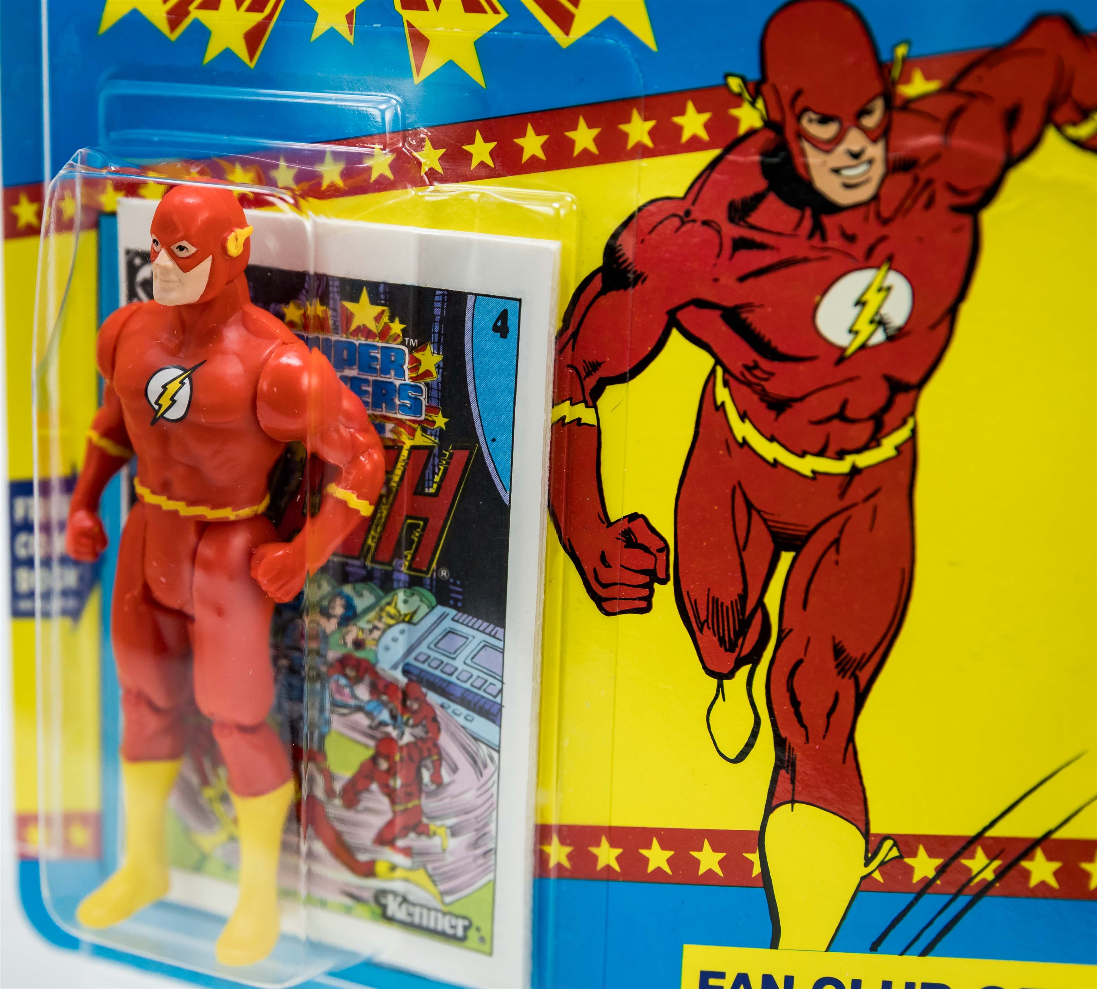 Very rare Sears 2-Pack featuring Series 1 Flash and Hawkman. Both are unpunched with clear bubbles and trays. Various condition issues – see photos. Wonderful display showcasing both carded figures along with ultra rare original Sears mailer. Approximately 26.5 x 2.5 x 14 inches. Encapsulated by CAS (75, 70-70-90), #10160817