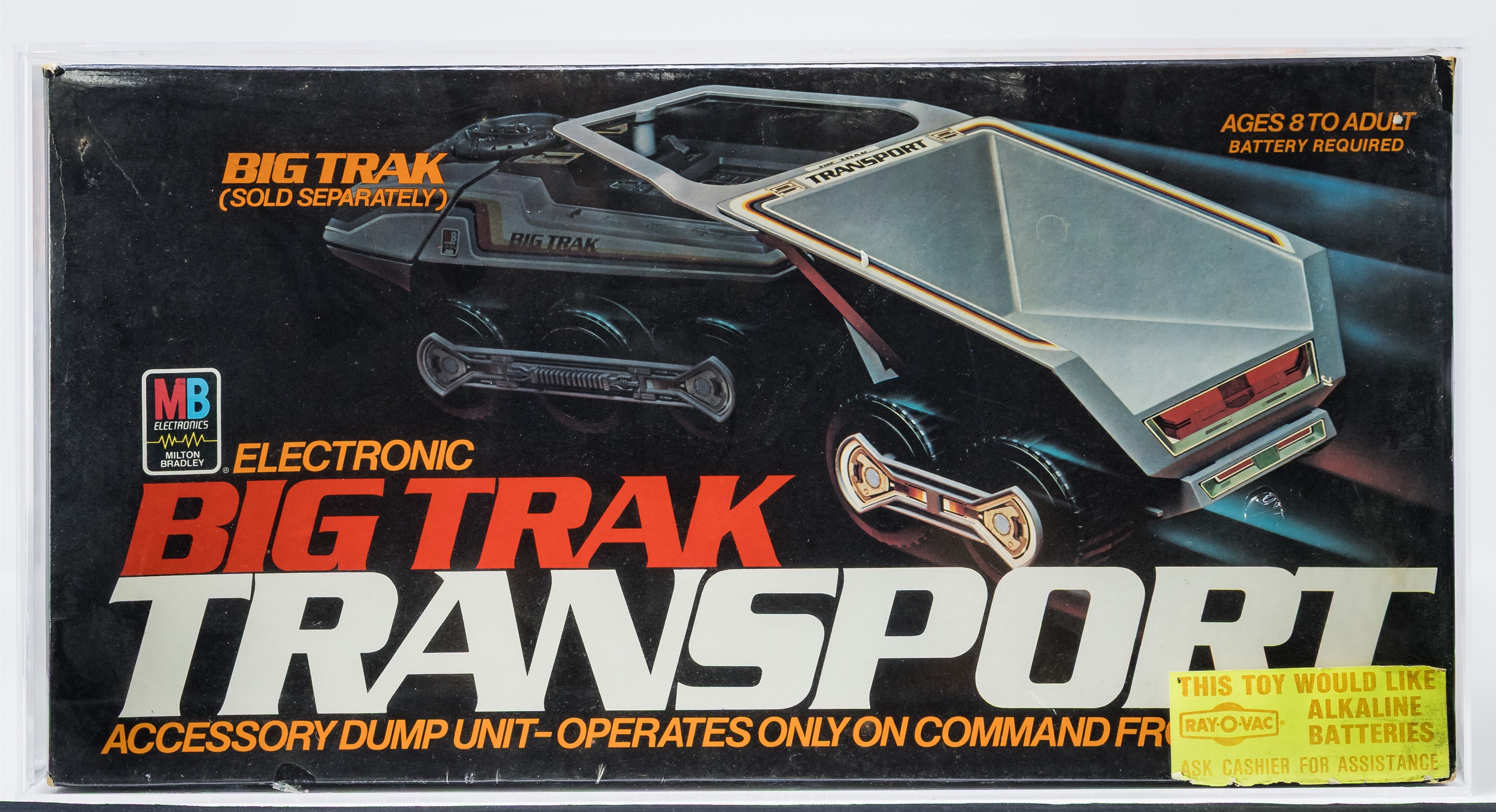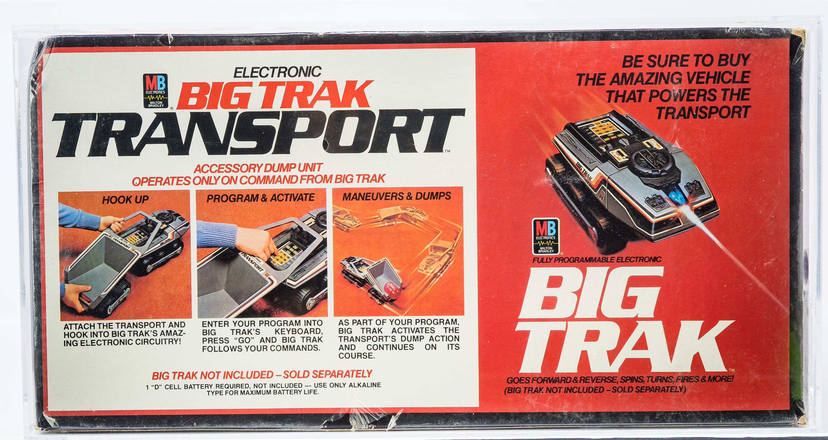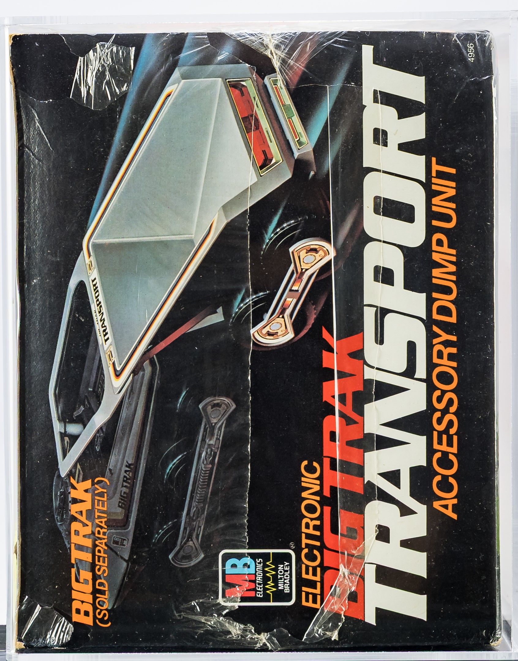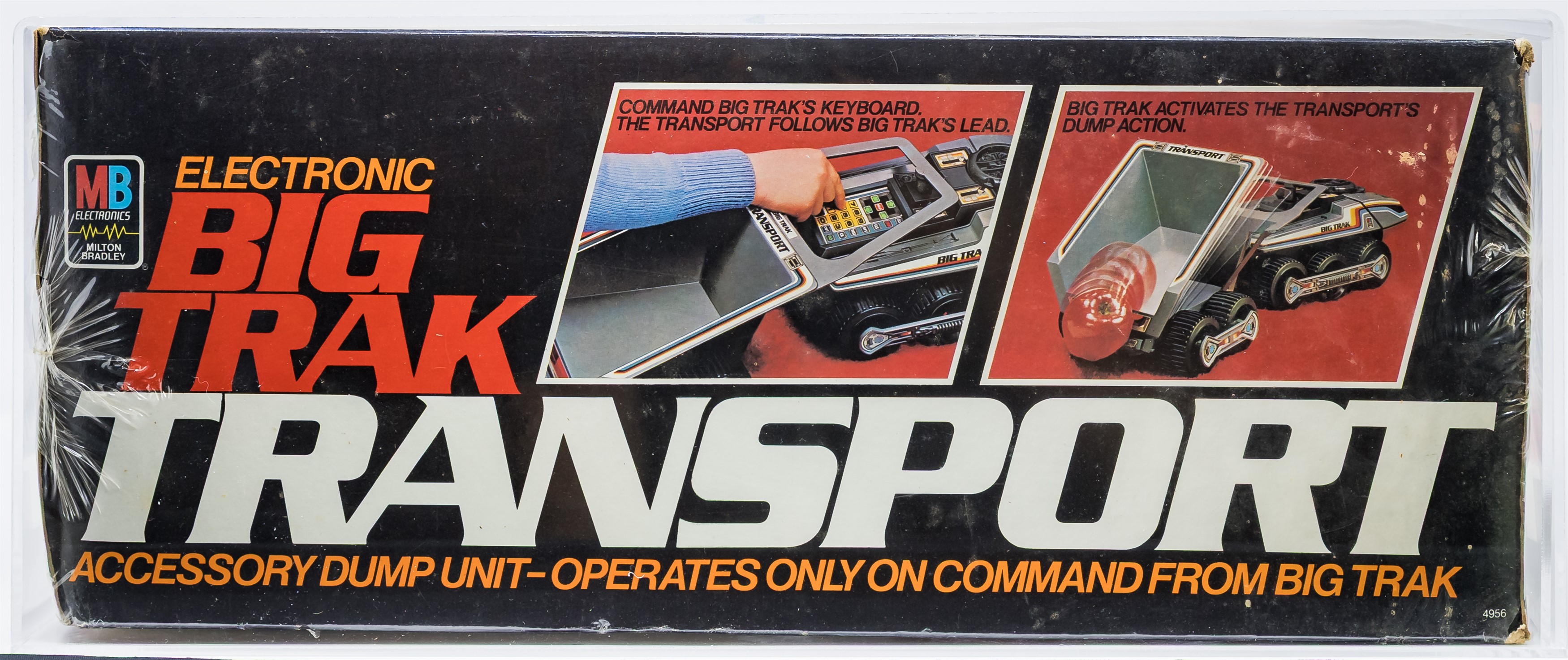 Ultra rare MISB Transport w/ Dumping Action from the Big Trak toyline released by Milton Bradley in 1979. Original plastic cellophane seal is still wrapped around the unit. Various condition issues throughout - see photos. Exceeding rare to find an electronic battery-operated toy from this era that is still factory sealed. Approximately 18.5 x 8 x 9.5 inches. Encapsulated by CAS (60+), #20229950
