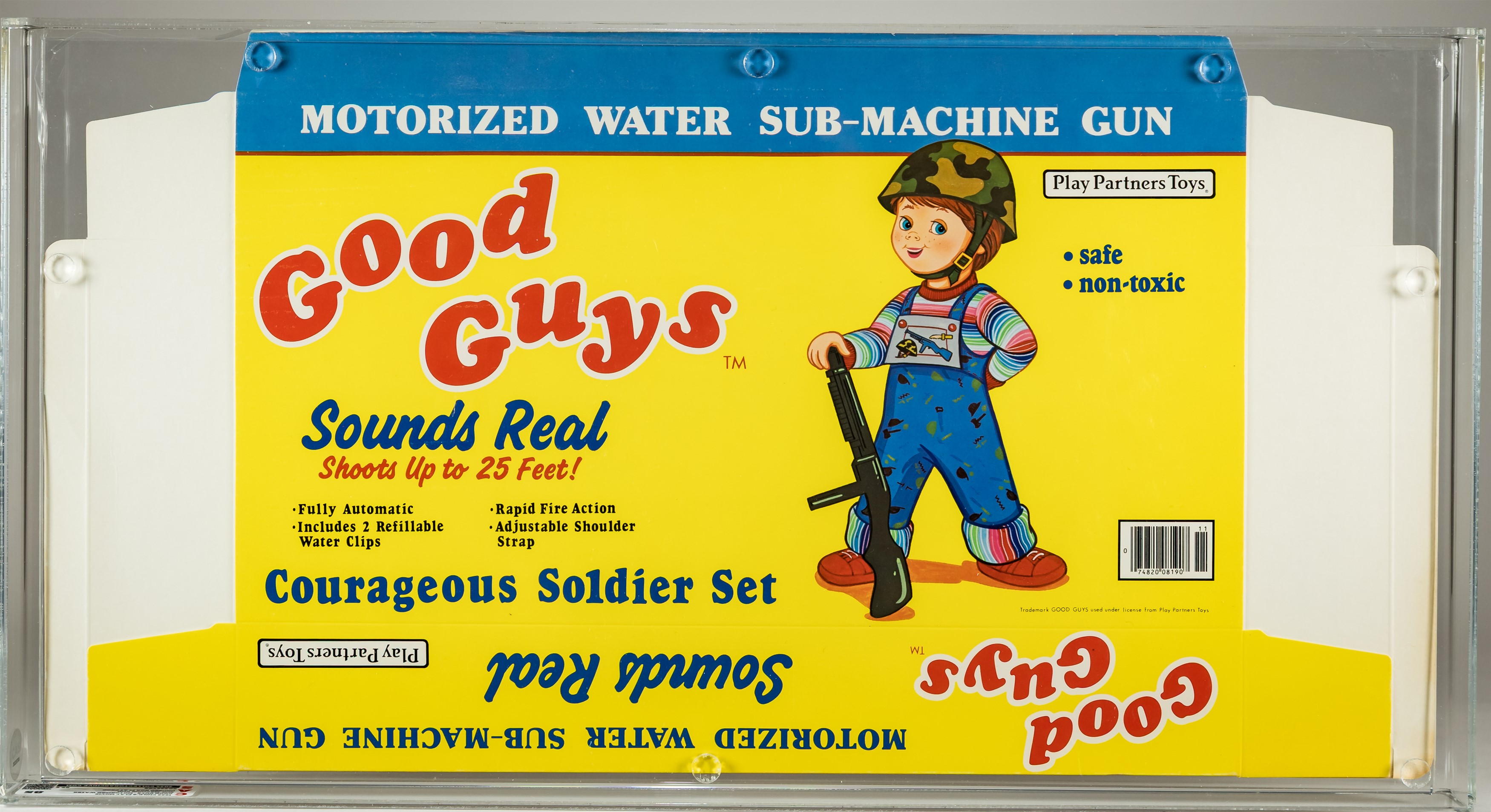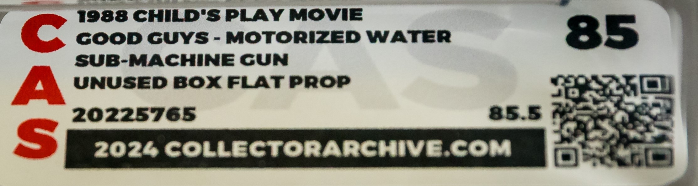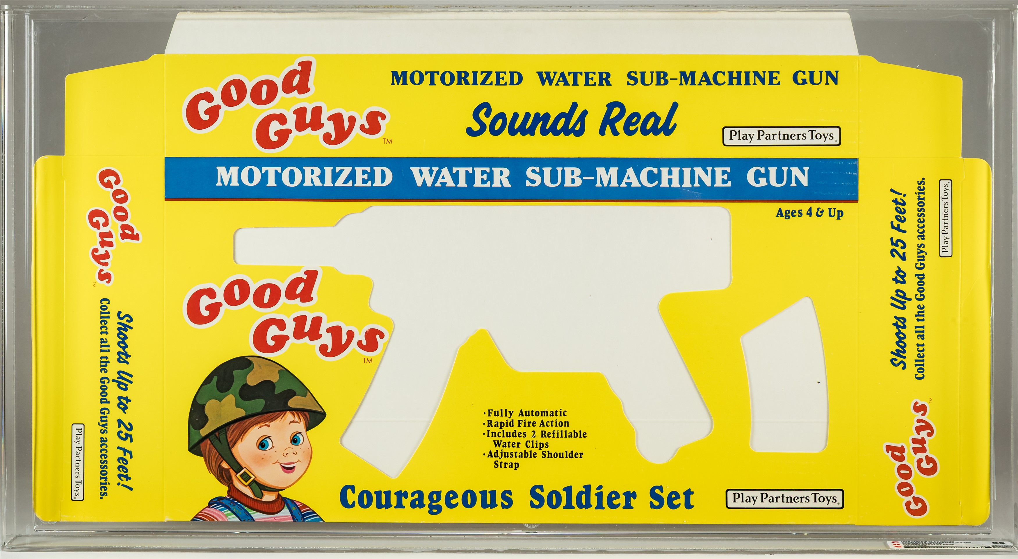 Motorized Water Sub-Machine Gun box flat prop from the “Good Guys” toy company. Approximately 25 x 1.5 x 13 inches. Encapsulated by CAS 85, #20233515
