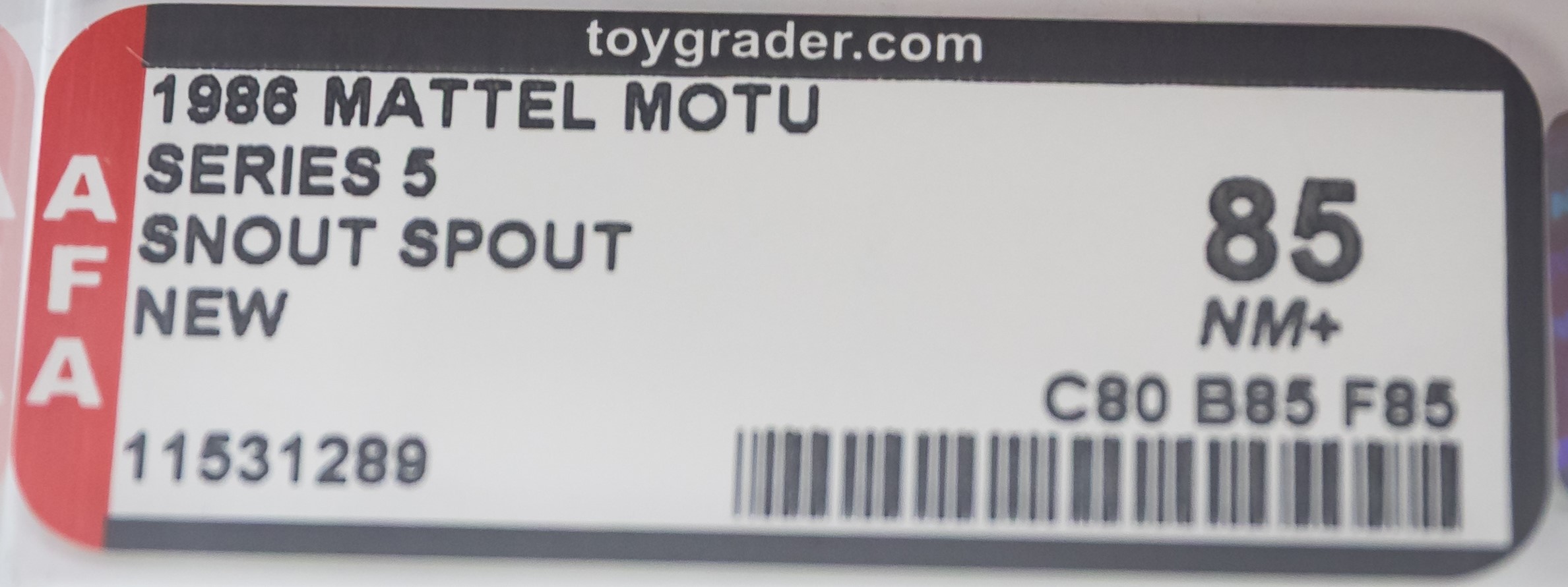 Lot # 86: 1986 MOTU: Snout Spout AFA 85 (First Release/None Graded Higher)