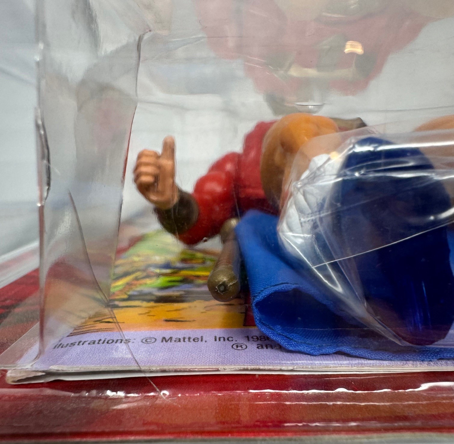 Well-presenting King Randor released as part of Series 6 in 1987. Stellar card with only minor imperfections. Bubble is clear and retains perfect form free from dents and dings. As stated above, hairline cracking is present under the base of the bubble (photo 2). King Randor himself is in mint condition. An excellent opportunity to pick up a stellar display piece. Made in Malaysia. Encapsulated by AFA 85, (85-90-90) #15690279