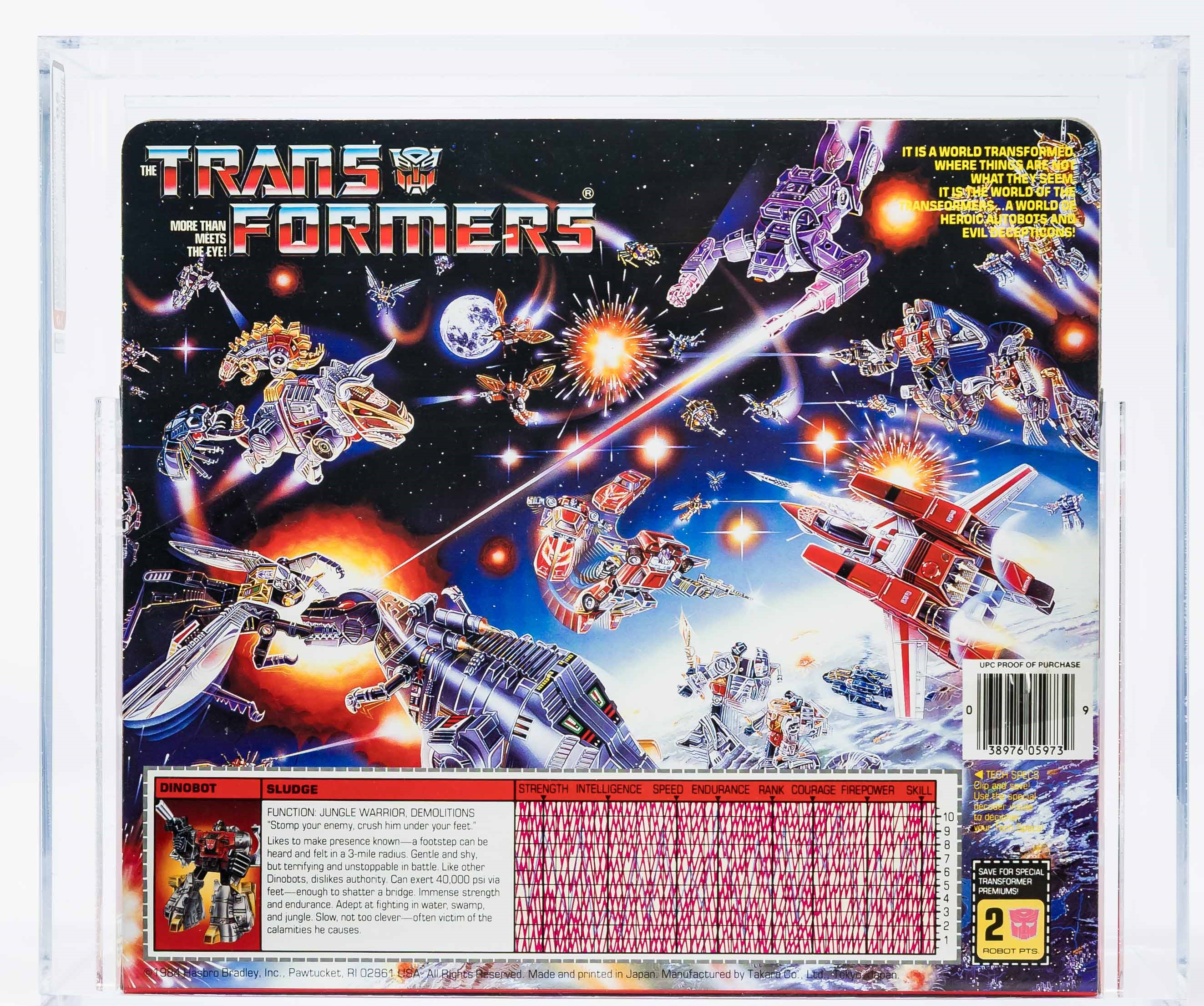Ultra high-grade MISB Sludge from the popular Dinobots line released as part of Series 2 in 1985. Factory sealed Dinobots are extremely difficult to find in AFA 85 condition. In fact, there is not a single AFA 85 Dinobot currently available in any marketplace.
