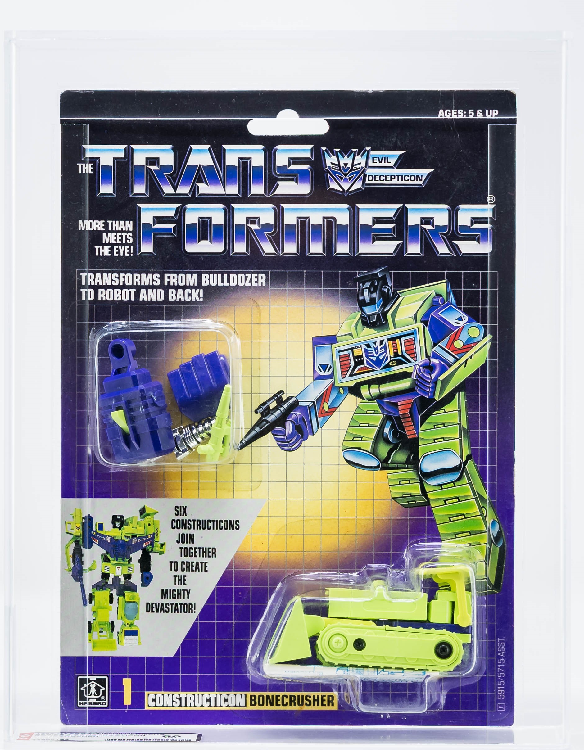 We are thrilled to offer the complete set of all six Constructicons (in addition to the Devastator giftset). This carded set was curated by one of the top G1 collectors in the hobby and marks the first time a complete set of AFA graded Constructicons has hit the auction block.