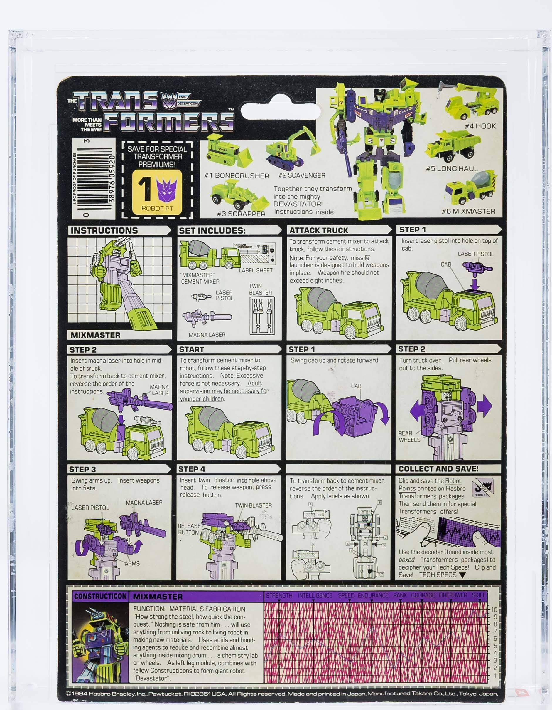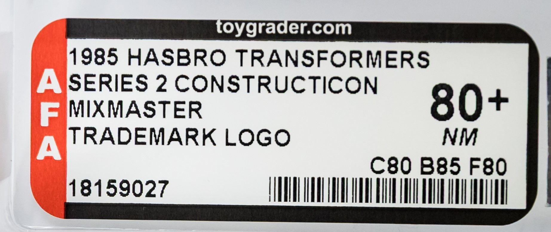 Lot # 107: 1985 Transformers: Constructicon Mixmaster AFA 80+ (“TM” card)