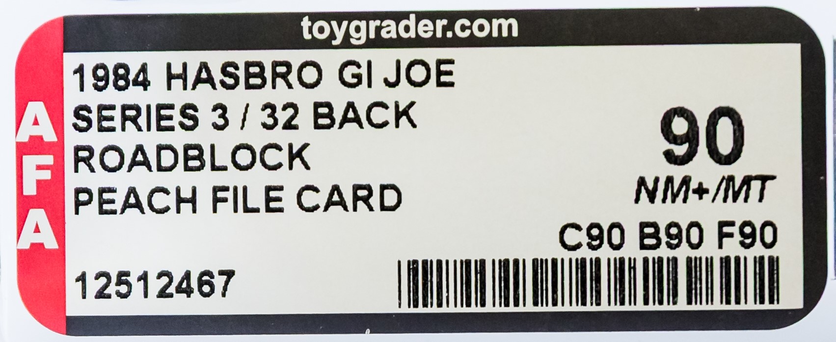 Lot # 171: 1984 G.I. Joe: Roadblock 32-Back AFA 90 (First Release)