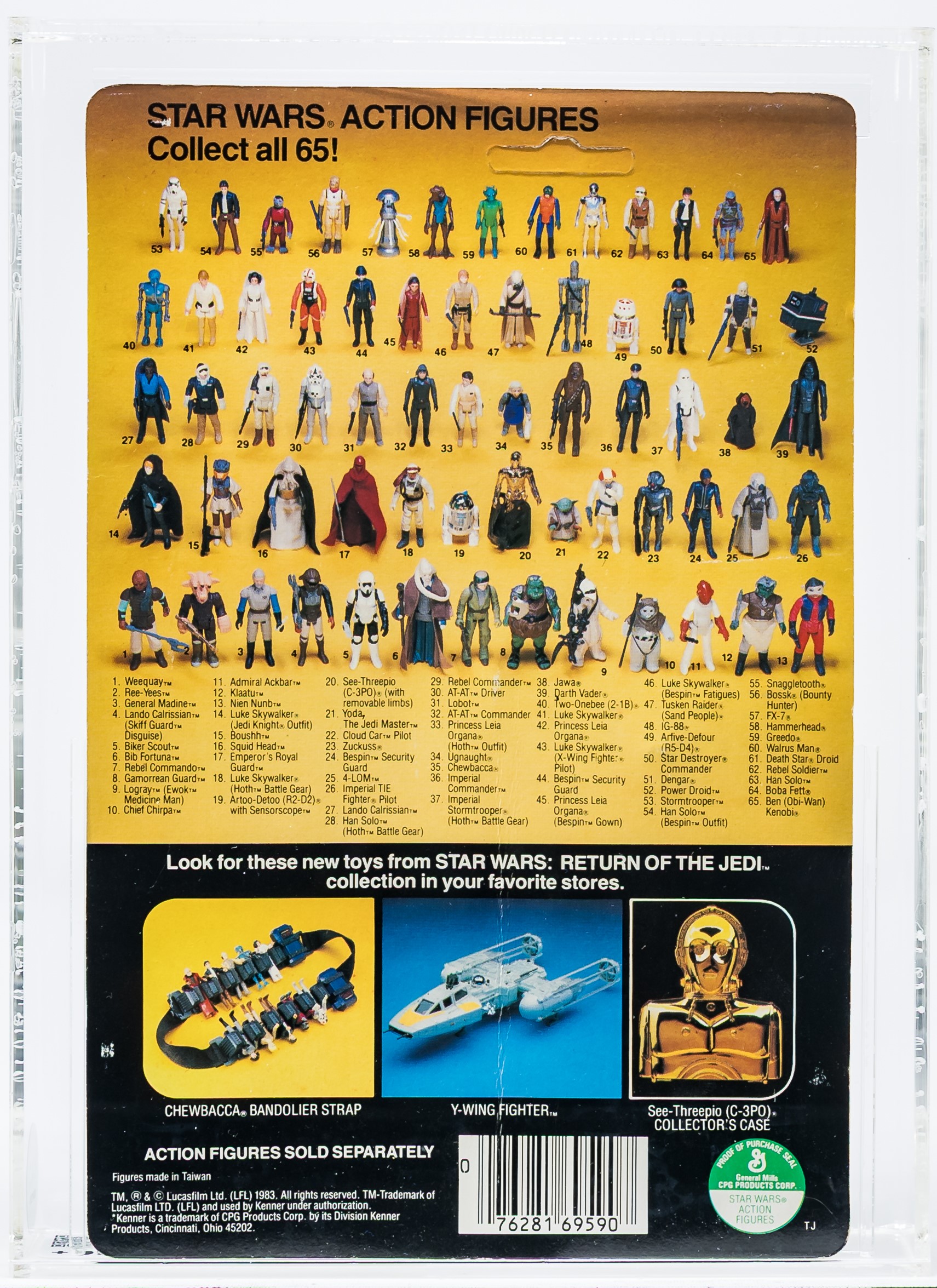 Unpunched, no price tag sticker or residue/imprint. Front of the card is superb. Back of the card exhibits a vertical vein the runs from the center of the base of the card to mid card. Bubble is yellow and retains great form with a small dimple at the bottom (center). Action figure looks great within. Encapsulated by CAS 80+y, (80-80-90), #10221830