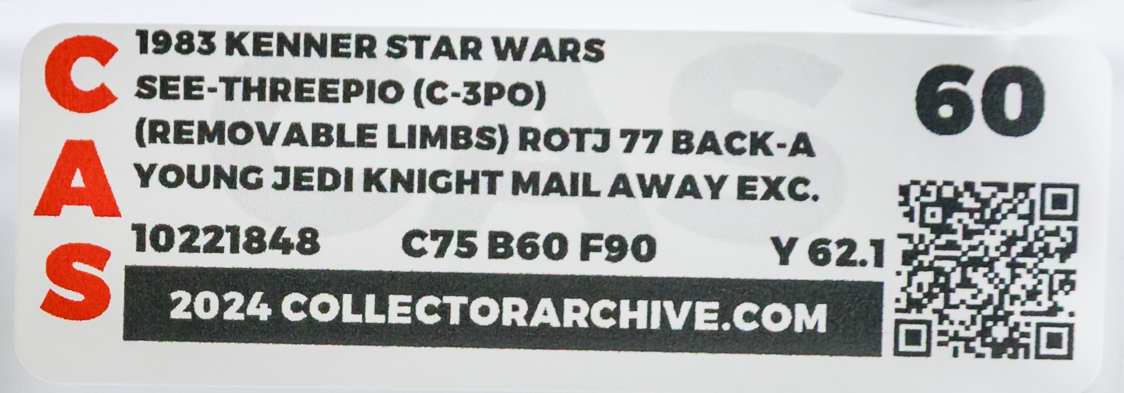 Lot # 218: 1983 Star Wars ROTJ: C-3PO 77 Back-A CAS 60y (Young Jedi Knight Mail Away)