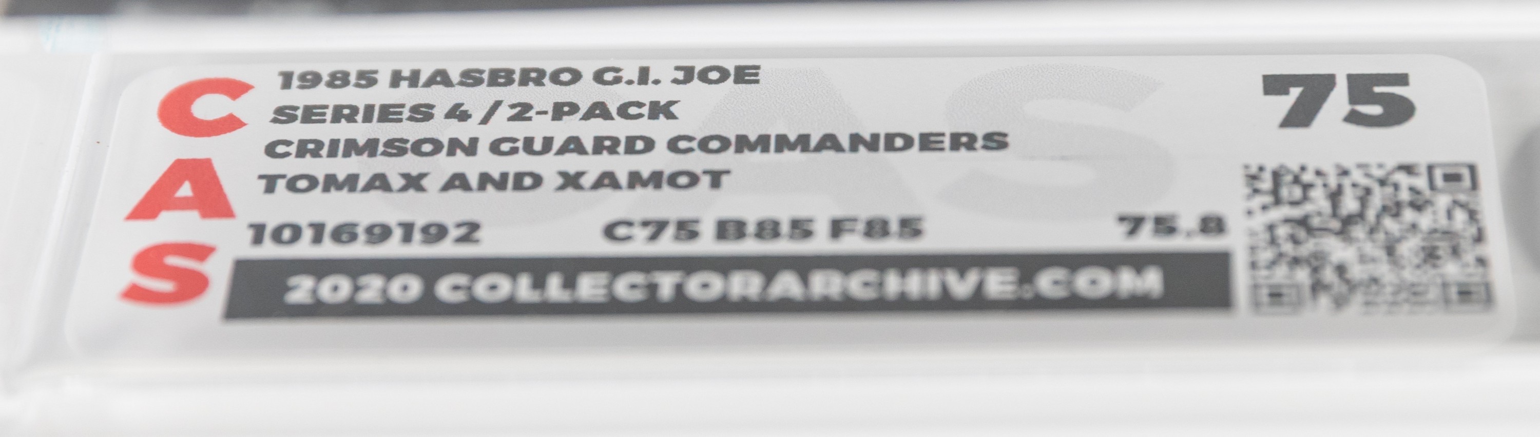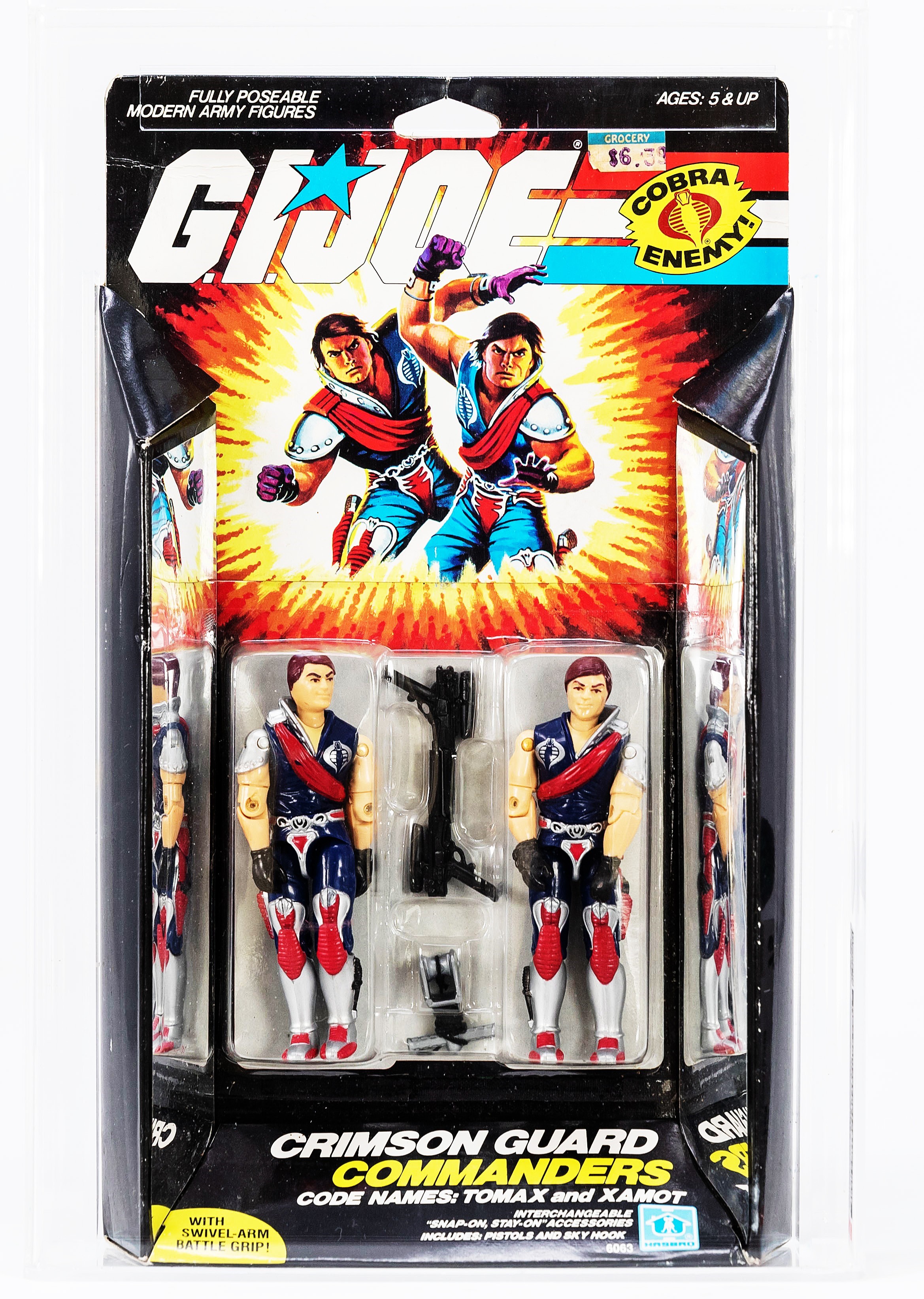 Extremely attractive Series Four giftset of the Crimson Guard Commanders: Tomax and Xamot.  One of the more unique releases in the line, this one is extremely popular amongst collectors.  Great design front and back, this is an ideal collectible for those desiring a classic piece of ARAH history.  Encapsulated by CAS (75, 75-85-85), #10169192