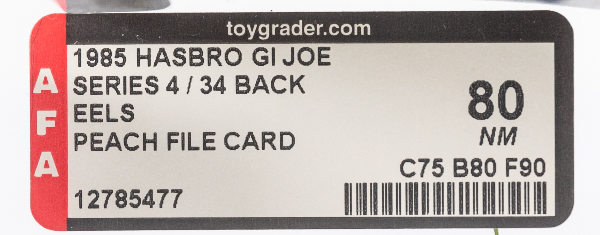 Early release Series Four Eels with peach file card. This one does exhibit leg movement. A great opportunity for value-minded collectors to add to their collection. Encapsulated by AFA (80, 75-80-90), #12785477