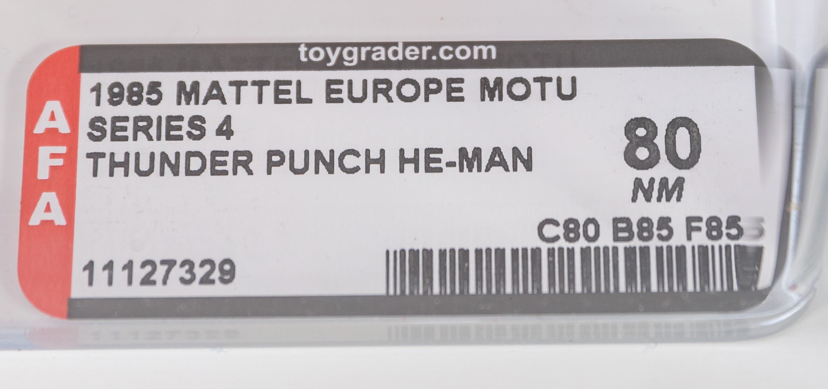 Beautiful unpunched example with a crystal clear bubble. Unlike the general release, this is the rare variant without the punch at the bottom of the card. A high-grade Heman that displays quite well and would make a significant addition or upgrade to virtually any upmarket MOTU collection. G3, Made in Taiwan. Encapsulated by AFA (80, 80-85-85), #11127329