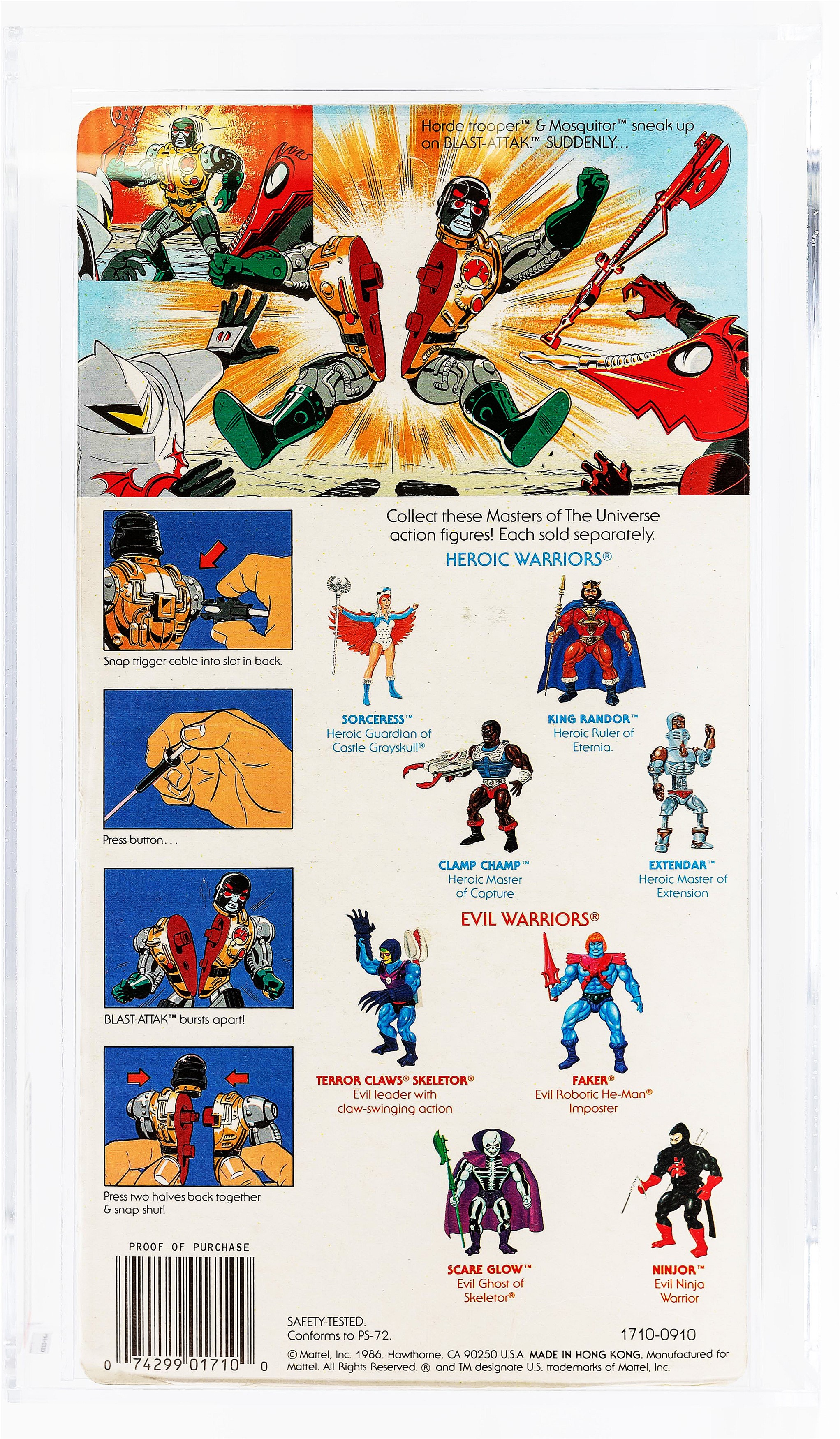 Difficult to find Series Six carded figure in high-grade. Crystal clear bubble, unpunched, and great presentation value; we foresee action from late-series MOTU collectors. Made in Hong Kong. Encapsulated by AFA (80+, 80-85-90), #14673710